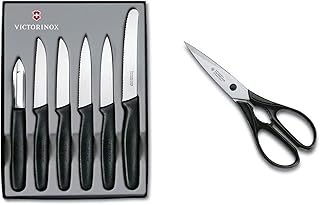 Victorinox 6-teiliges Küchenmesser-Set für Gemüse (Sparschäler, Gemüsemesser, Spülmaschinengeeignet) schwarz & Universal Küchenschere, 20 cm Gesamtlänge, Rostfrei, Edelstahl, schwarz