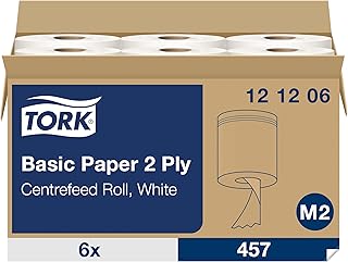 Tork 121206 Standard Papierwischtücher weiß für M2 Wischtuch Spender mit Innenabrollung – Wischtücher aus Papier 2-lagig & geprägt - 6 Rollen x 160 m, perforiert - 457 Tücher (20 x 35 cm) pro Rolle