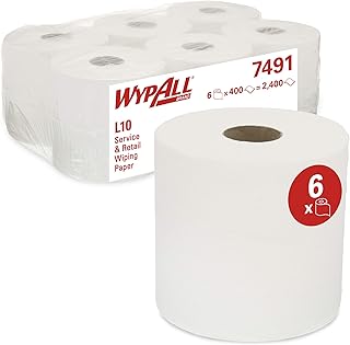 WypAll 7491 Papierwischtücher für die Reinigung im Service & Einzelhandel L10 mit Zentralentnahme für Roll Control Spender, 1-lagig, weiß (6 Rollen x 400 Wischtücher)