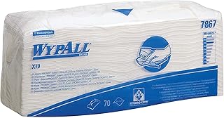 WypAll Wischtücher, X70, Industrielle Reinigungstücher, Hydroknit-Technologie, 1-lagig, 6 Packungen x 70 Tücher, Weiß, 7867