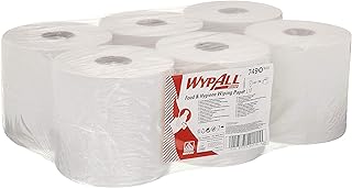 WypAll 7490 Papierwischtücher für Lebensmittel & Hygiene L10 mit Zentralentnahme für Roll Control Spender, 1-lagig, weiß (6 Rollen x 630 Wischtücher)