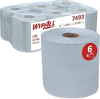 WypAll 7492 Papierwischtücher für die Reinigung im Service & Einzelhandel L10 mit Zentralentnahme für Roll Control Spender, 1-lagig, blau (6 Rollen x 400 Wischtücher)