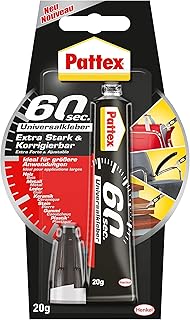 Pattex 60sec. Universalkleber, Alleskleber für Haushaltsreparaturen, schnell klebend in nur 60 Sekunden, starker Kleber für vielfältige Materialien, 1x20g Tube