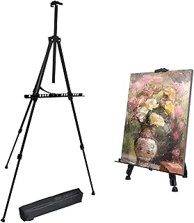 Dolicer 167.6 cm Kunst-Staffelei Ständer, 1 Pack Aluminium-Metall-Staffelei, verstellbare Künstler-Staffelei, Höhe von 53.3 cm bis 167.6 cm, Tischplatte mit tragbarer Tasche, schwarz