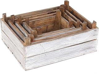 DESIGN DELIGHTS DEKO HOLZKISTEN Set WINEYARD 45 | 4 teiliges Vintage Kisten Set aus Altholz, Shabby Style Weinkisten| Kistenset Farbe: Natur-weiß
