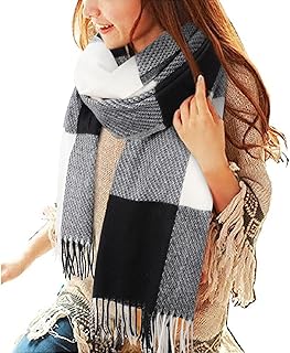 Damen Herbst Winter Schal Klassische Quaste Plaid Tartan Schal Warm Weich Chunky Große Decke Wrap Schal Schals