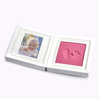Abdruckset /// BABYFOOTPRINT KIT /// Klapp-Box gefüllt mit orthopädischem Trittschaum + 1 Fenster für Foto /// Hand- und Fuß-Abdruckset /// einfach, trocken und sauber in der Anwendung (Pink)