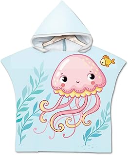 Kinderbadetuch Badeponcho Strandtuch mit Kapuze für Kinder, Treer Baby Bademantel Karikatur Muster Kinder Robe Strand Schwimmen mit Kapuze Poncho für Jungen und Mädchen (60X60cm,Rosa Qualle)
