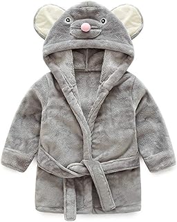 Kinder Nachtwäsche mit Kapuze Bademantel, Baby Kleinkind Jungen Mädchen Nachthemd Flanell Pyjamas Bademäntel Cartoon Tiere Handtuch Maus
