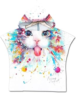 Treer Kinderbadetuch Badeponcho Strandtuch mit Kapuze für Kinder, Baby Bademantel Tier Drucken Kinder Robe Strand Schwimmen mit Kapuze Poncho für Jungen und Mädchen (60X60cm,Farbe Katze)