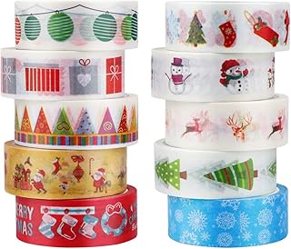 10 Rollen Weihnachten Washi Tape Set, verschiedene dekorative Tape Masking Tape Scrapbooking Tape Klebeband für Weihnachten Dekoration Festivals DIY Crafts Geschenkverpackung Party Favor Supplies