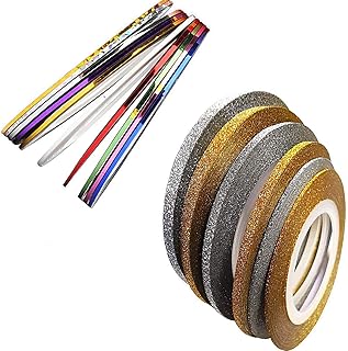 16 Rollen Nail Art Stripes Tape Nagel Zierstreifen Nail Striping Tape Sticker Nageldesign Deko, Tape Sticker Zierstreifen Packung Selbstklebend Glitze Line DIY Nail Art Styling Tools Striping Tape