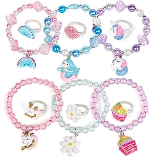 vamei Kinderschmuck Mädchen Armbänder Meerjungfrau Einhorn mit Ringe Freundschaftsarmband Mädchen Prinzessin Schmuck Set Geburtstag Gastgeschenk Einhorn Mitgebsel Party