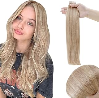 RUNATURE Tape in Extensions Echthaar Blond Haarextension Echthaar Tape Goldblond Hervorgehoben Hellblond Tape Extensions Klebeband für Frauen #16P24 30cm 12 Zoll 30g/20 Stück