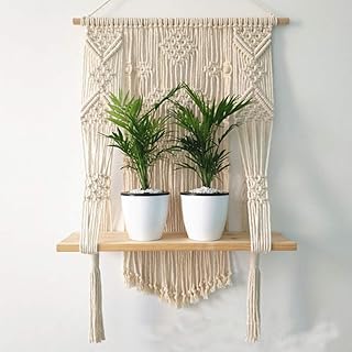 fuguzhu Makramee Wandbehang Holz Regal, Boho Wanddeko Wandteppich Pflanzenhalter, Nordischen Stil Quaste Wandbehang Handgefertiges Dekorativer