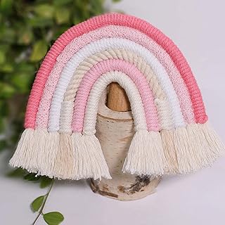 Boji Neutraler Regenbogen Wandbehang, Nordischer Gewebter Regenbogen Wandbehang, Makramee Regenbogen Boho Dekor Für Wand Zimmer Zuhause Kinderzimmer Babyzimmer Rosa Figured Tuch