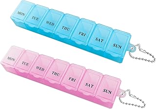2 Stück Transparente Pillendose,15 * 3 * 2cm Medikamentenbox Blau Rosa Tablettenbox Pillendose 7 Fächer Pillendose 7 Tage Reise-Pillenbox leicht Zu Öffnen