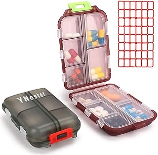 YNester 2 Pack Pillendose 7 Tage, 10 Fächer Tablettenbox 7 Tage Reise pillendosen Pillenetui Medikamentendosierer Pillenbox, Vitamin Fischöl Fächer Container medikamentenbox (Dunkelrot + Grau)