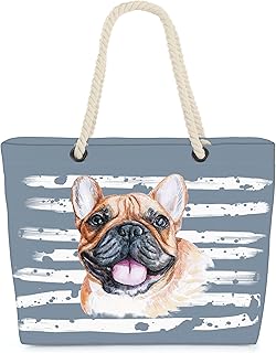 VOID XXL Strandtasche Französische Bulldogge Shopper Tasche 58x38x16cm 23L Beach Bag Hund, Kissen Farbe:Grau