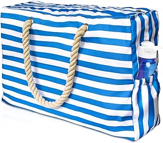 ManGotree Große Strandtasche, Strandtasche, Aufbewahrungstasche, Segeltuch-Strandtasche, Pool-Tasche, Schultertasche für Fitnessstudio, Strand-Reisetasche für Familienurlaub, Essentials