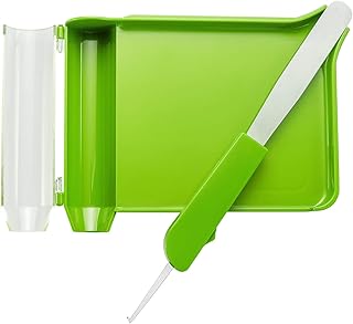 Tablett mit Zählfunktion für die rechte Hand mit Edelstahlspatel (hellgrün, Edelstahlklinge + Kunststoffgriff)