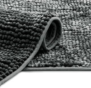 Beautissu Badematte rutschfest 70x120 cm - BeauMare WR Chenille Badezimmerteppich für Fußbodenheizung geeignet - Flauschiger Badvorleger für Dusche, Badewanne und WC in Anthrazit