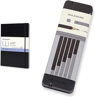 Moleskine Zeichenstift-Set, 5 Bleistifte + Kreativ Notizbücher, Skizzenbuch, A4, 165G Papier, Hard Cover, schwarz
