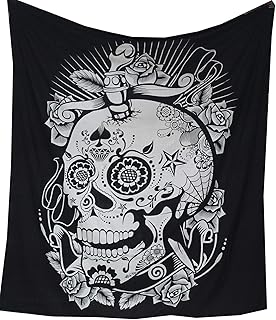 raajsee Schwarz und Weiß Totenkopf Wandteppich Mandala Queen (210x220cms)/Indisch Psychedelic Bohemian Hippie Wandbehang/Indischer Boho Wandtuch Hippie Decke Baumwolle Bohemian Mehrfarbige Tuch