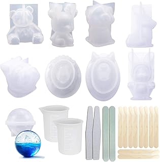 Woohome 9 Stück Tier Silikonform Gießform Resin Form, Resin Basteln Gießform Messbecher, Holzstäbchen, Polierstift für Resin Craft DIY