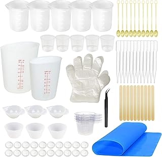 Exceart 45 Stück/Set Epoxidharz Werkzeuge Kit Silikon Form Werkzeug enthalten Messbecher Rührbecher Tropflöffel Rührstab für Schmuck DIY
