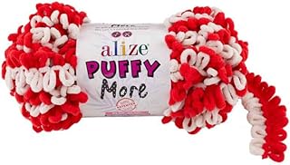 2 x 150 Gramm Alize Puffy More Strickwolle zweifarbig, 300 Gramm Fingerstrick - Wolle super Bulky, Schlaufenwolle, Stricken ohne Nadel (rot beige 6286)