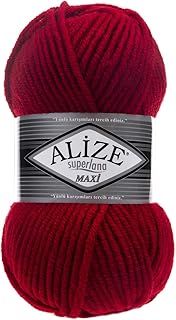 5 x 100 Gramm Alize Superlana Maxi Wolle, 500 Gramm Strickwolle 75% Acryl 25% Wolle (rot 56)