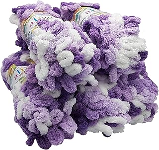 5 x 100 Gramm Strickwolle Alize Puffy Color, 500 Gramm Fingerstrick - Wolle mehrfarbig super bulky, Schlaufenwolle, Stricken ohne Nadel (flieder weiss 5923)