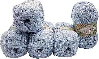5 x 100 Gramm Alize Softy Plus Strickwolle, Babywolle , 500 Gramm Wolle mit leichtem Plüsch (blaugrau 500)
