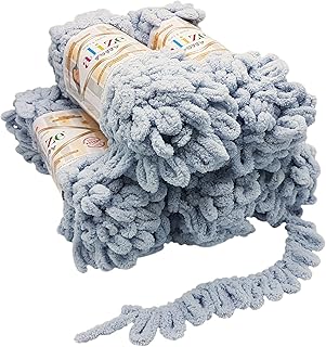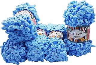 5 x 100 Gramm Strickwolle Alize Puffy fine, 500 Gramm Fingerstrick - Wolle super bulky, Schlaufenwolle, Stricken ohne Nadel (blau 218)