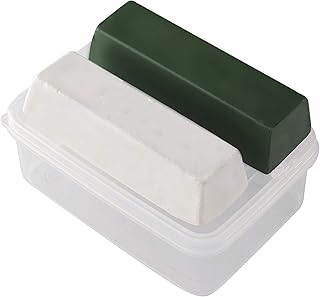 Angerstone Polierpaste Set - Grün-weiße Polierpaste (2 Stück, insgesamt 284 g) mit Kunststoffbox - Leder-Streichriemen & Abzieh-Streichriemen