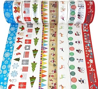 Pveath Weihnachts-Washi-Klebeband, 10 Rollen, dekoratives Washi-Tape, selbstklebendes Klebeband, bunt, DIY Masking Tape, japanische Maske, für Tagebuch,Tagesplaner,Weihnachtsdekoration,D