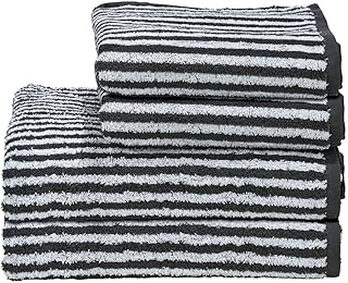DONE Handtuch-Set Daily-Shapes-Stripes 4 TLG. - 2 Handtücher 2 Duschtücher gestreift - 100% Baumwolle - Schwarz, Anthrazit, Grau/Weiß, Farbe:Anthracite/BrightWhite