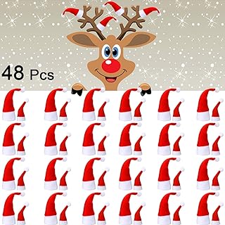 Boao 48 Stücke Mini Weihnachtsmützen, Mini Weihnachtsmützen, Mini DIY Weihnachtsmütze für Puppen Basteln Dekoration, Lutscher Candy Abdeckung, Tasse Flasche Abdeckung Geschenk, zu Hause Dekoration