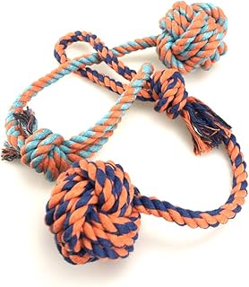 Haustier Seil Spielzeug/Baumwollseil mit Ball/Hund Kauen Spielzeug/Welpen-Zahnen Sauberes Spielzeug/Tug Game und Fetch Match. 2 Stück