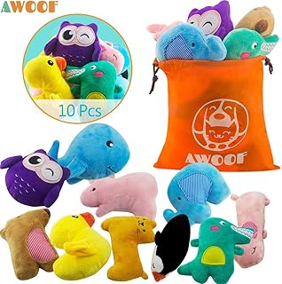 AWOOF 10 Pack Hundespielzeug Welpenspielzeug Hund Quietschspielzeug, Welpen Zahnen Spielzeug, Haustier Hund Plüsch Spielzeug, Weiches Kauspielzeug-Set für Welpe kleine Mittelgroße Hunde
