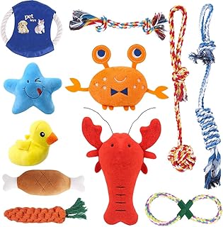 feihao Welpenspielzeug,Hundespielzeug,Hundespielzeug-Set,interaktives,Spielzeug,Welpen Zahnen Spielzeug Hund Seil Kauspielzeug und Quietschende Plüsch Hundespielzeug(11 Stück