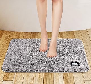 Badematte rutschfeste Badvorleger Waschbar, Wasserabsorbierenden Flauschige Mikrofaser Badteppich Antirutsch Maschinenwaschbare, Dusche Badezimmer Türöffnung Fußmatte (50x80cm) (Hellgrau)