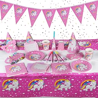 Funmo 54 pcs Geburtstag Party-Set,Geburtstag Einhorn Party Set,Unicorn Party Set,wiederverwendbar Einhorn Geburtstag Geschirr Kit Teller Becher für 6 Kinder Geburtstagsgeschenk,Party Deko,Baby Shower