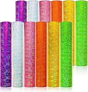Souarts Plotterfolie für Tassen, Selbstklebende Vinyl Plotter Folie Transferfolie, Holographische Schneideplotter für Basteln Tassen Glas Abziehbilder Schilder Fenster Aufkleber (12er Bunt)