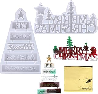 BHGT Epoxidharz Weihnachten Formen Set Silikonform Weihnachtsformen Resin Formen Silikon Silikonform Basteln Gießformen Mold Harz Casting Form (Merry Christmas A)