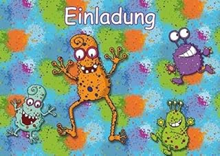 Döll 12-teiliges Einladungen-Set * Monster * mit 6 Einladungskarten und 6 Umschläge für Kindergeburtstag // Kinder Geburtstag Party Einladung Karten Alien Glibber