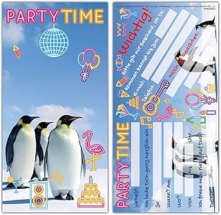 12 PINGUINE PARTY Einladungskarten im Set - lustige Einladungen zum Kinder-Geburtstag oder Party für Jungen Mädchen & Erwachsene von BREITENWERK