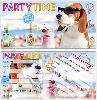 12er Set PARTY-HUND Einladungskarten - lustige Premium Einladung zum Kinder-Geburtstag oder Party für Jungen Mädchen & Erwachsene von BREITENWERK