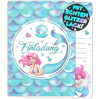 VULAVA 12x Glitzer EINLADUNGSKARTEN für Party und Kindergeburtstag - die Karten im bunten Meerjungfrau Design sind die EINLADUNG für Mädchen Jungen Kinder zum Geburtstag Einschulung und KINDERPARTY